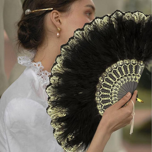 2 Pack Women's Fan Feather, 1920s Vintage Style Retro Hand Fan Ladies, 1920s Vintage Foldable Handheld Hand Fan, Gatsby Costume, for Wedding, Halloween, Party, Costume Decoration